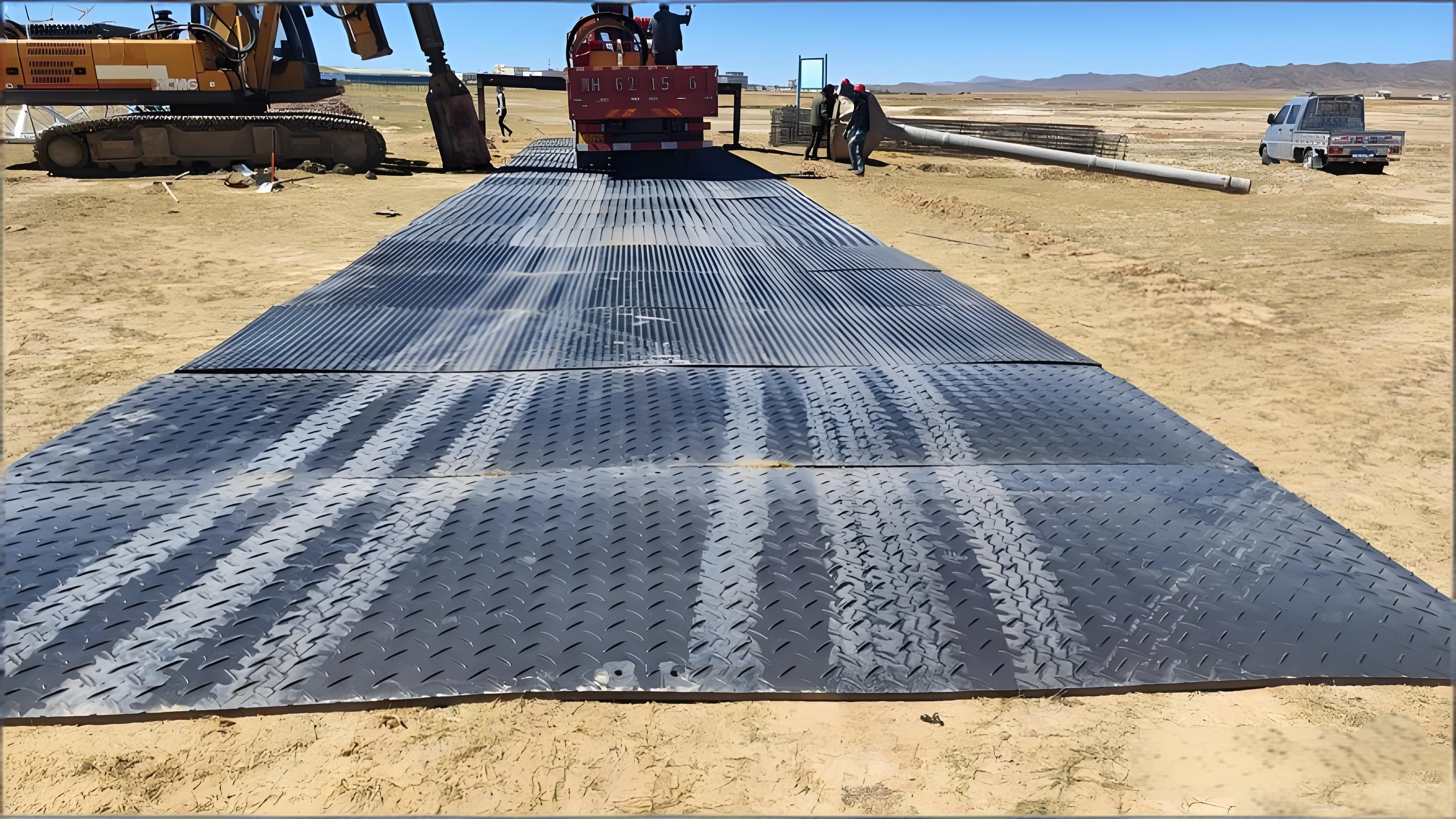 Construction sites are inherently hazardous, with risks like soil erosion, vehicle instability, and worker injuries. HDPE plastic track mats provide a stable, slip-resistant surface that mitigates these dangers. Their interlocking design ensures uniform weight distribution, preventing equipment sinkage and accidents. Additionally, their non-porous nature resists water absorption, maintaining traction even in wet conditions—a critical factor for worker safety and project continuity.